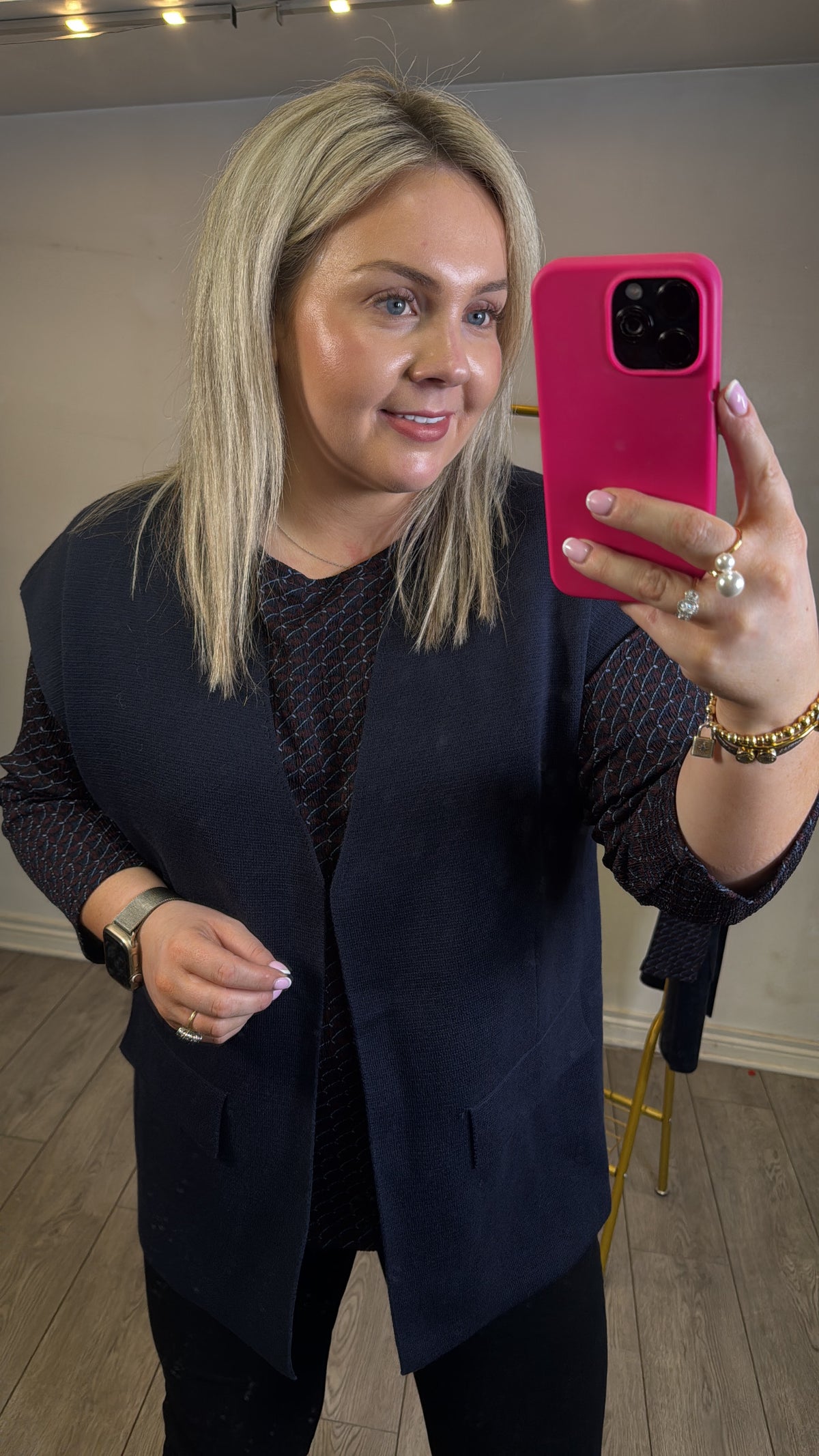 A gorgeous geometric printed blouse in shades of navy, burgundy and cornflour blue. Featuring a round neck, 3/4 sleeves and regular fit. True to size but if in between sizes you could size down.
