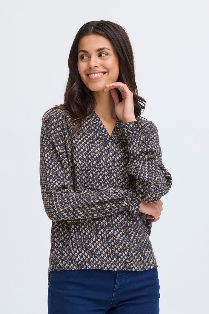Fransa FrLainey Pumice Grey/Black Abstract Printed V-Neck Top