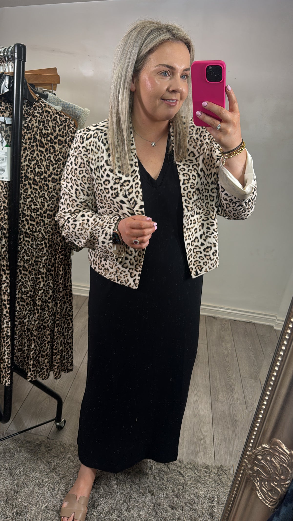 Elegant midi dress with a V-neck. This dress features short sleeves, a relaxed fit, and falls to the calves. This item is made of 51% modal, 44% polyester, and 5% elastane, providing a comfortable and smooth fit.