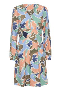A beautiful v-neck dress in shades of mint, navy, beige, khaki and peach. Such a flattering length and can be dressed up or down. We recommend taking your normal size.