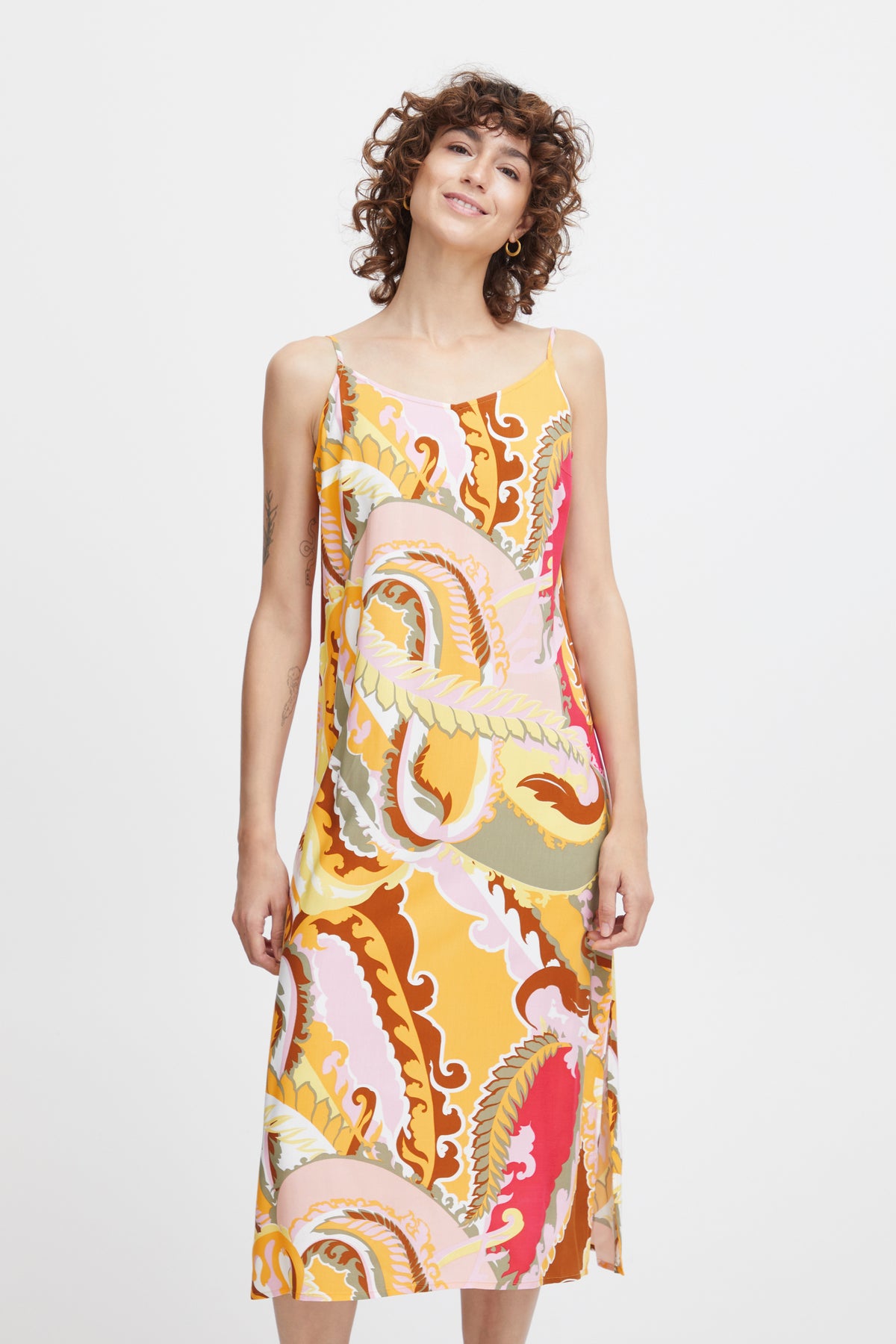 B.Young Bymmjoella Yarrow Pink Paisley Mix Slip Midi Dress