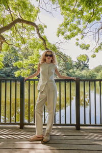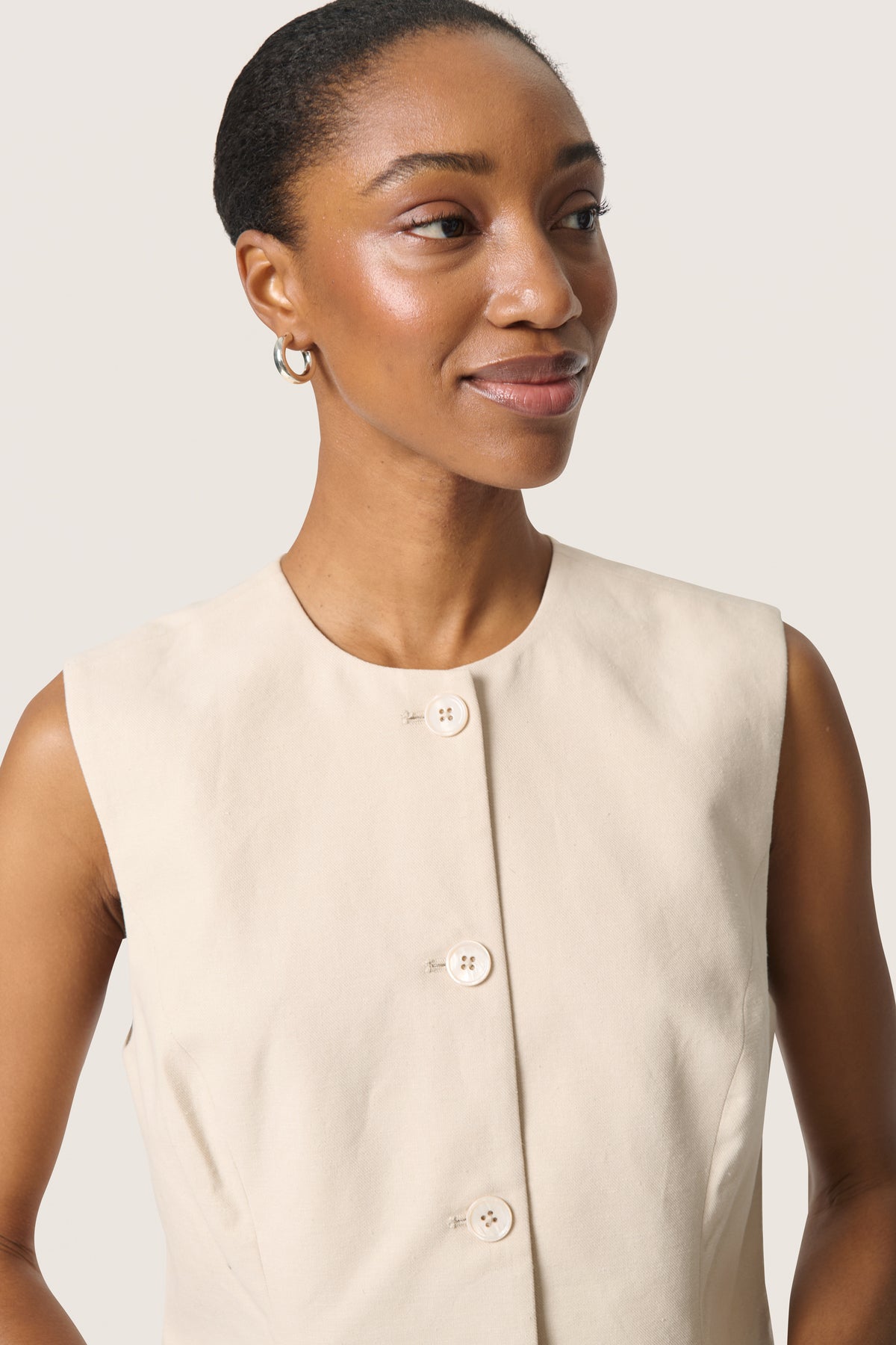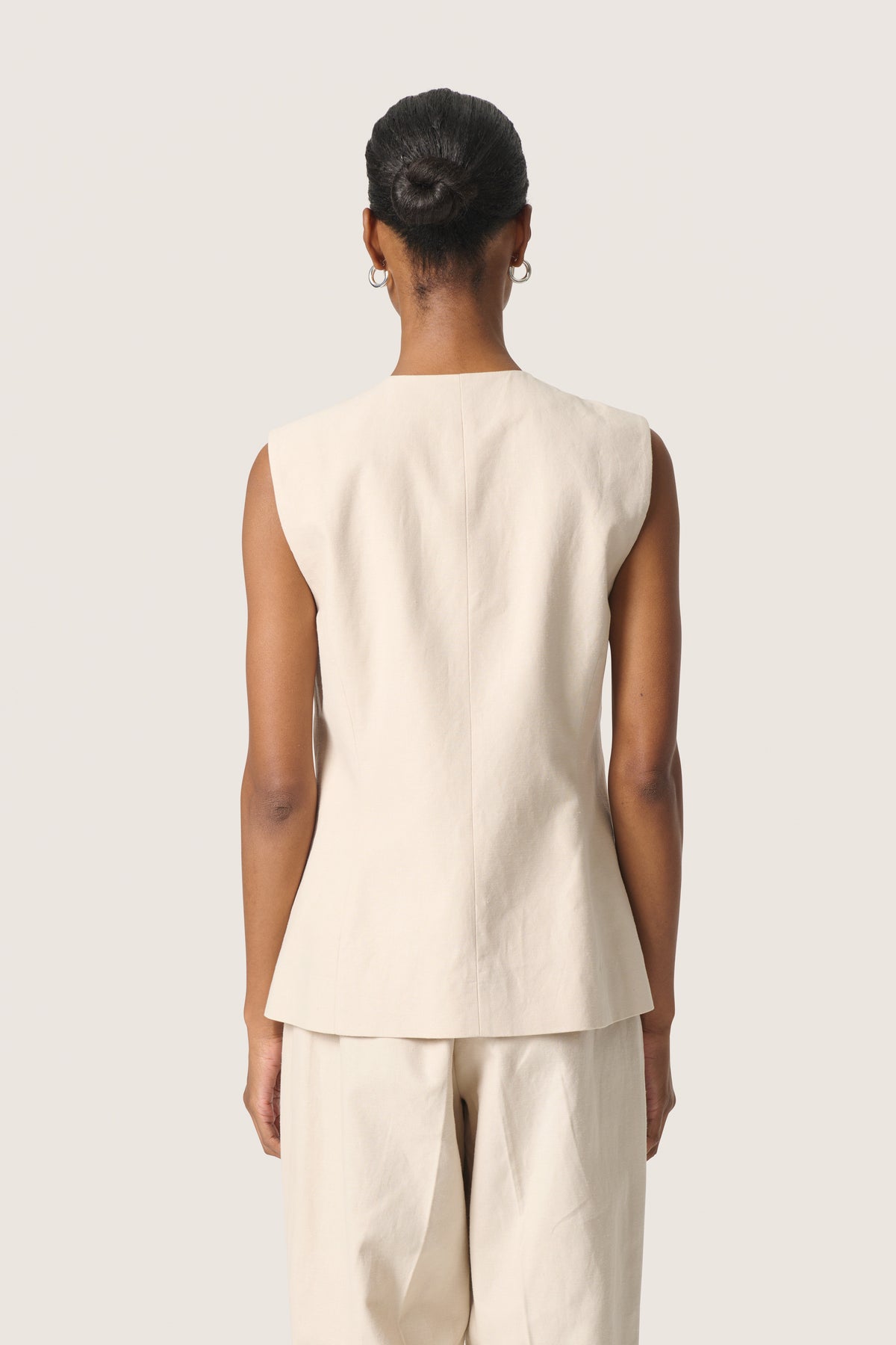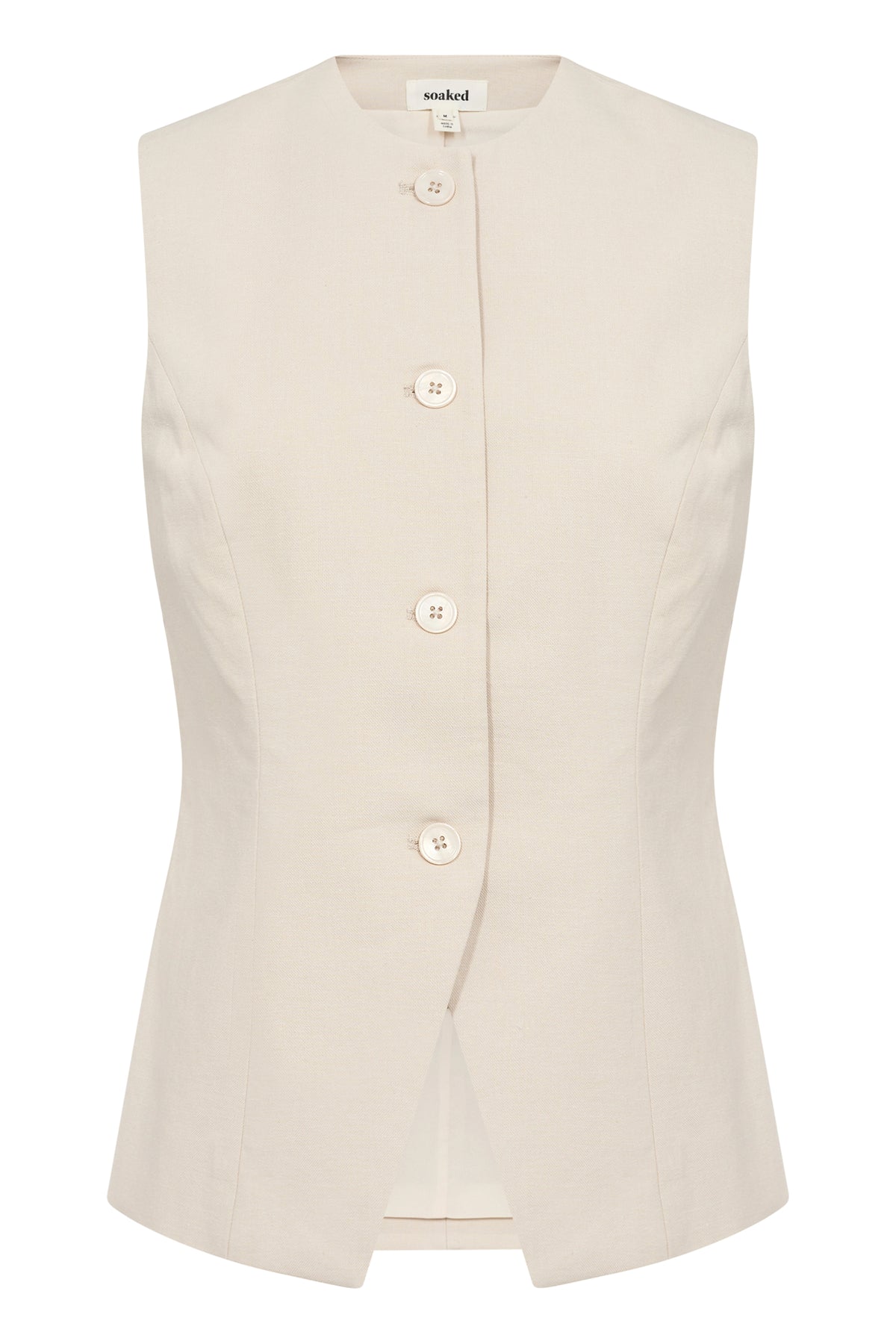 Soaked Linnena Beige Linen Fitted Waistcoat
