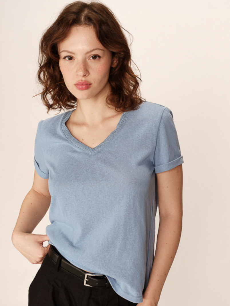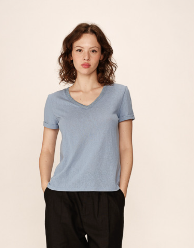 Grace and Mila Pepito Blue V-Neck Lurex T-Shirt