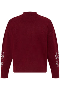 Discover this women's sweater with a relaxed fit, mock neck, and delicate embroidery on shoulders and sleeves. Soft knit fabric offers comfort for everyday wear. Ideal for a cozy yet stylish outfit this season.