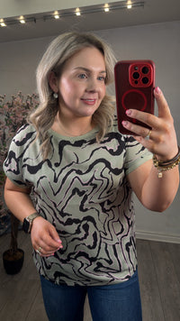 B.Young Bypanya Green Tea Abstract Printed Front T-Shirt