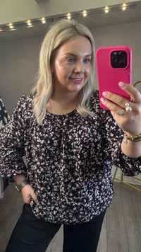 Fransa FrKiki Dainty Floral Baby Pink/Burgundy Blouse