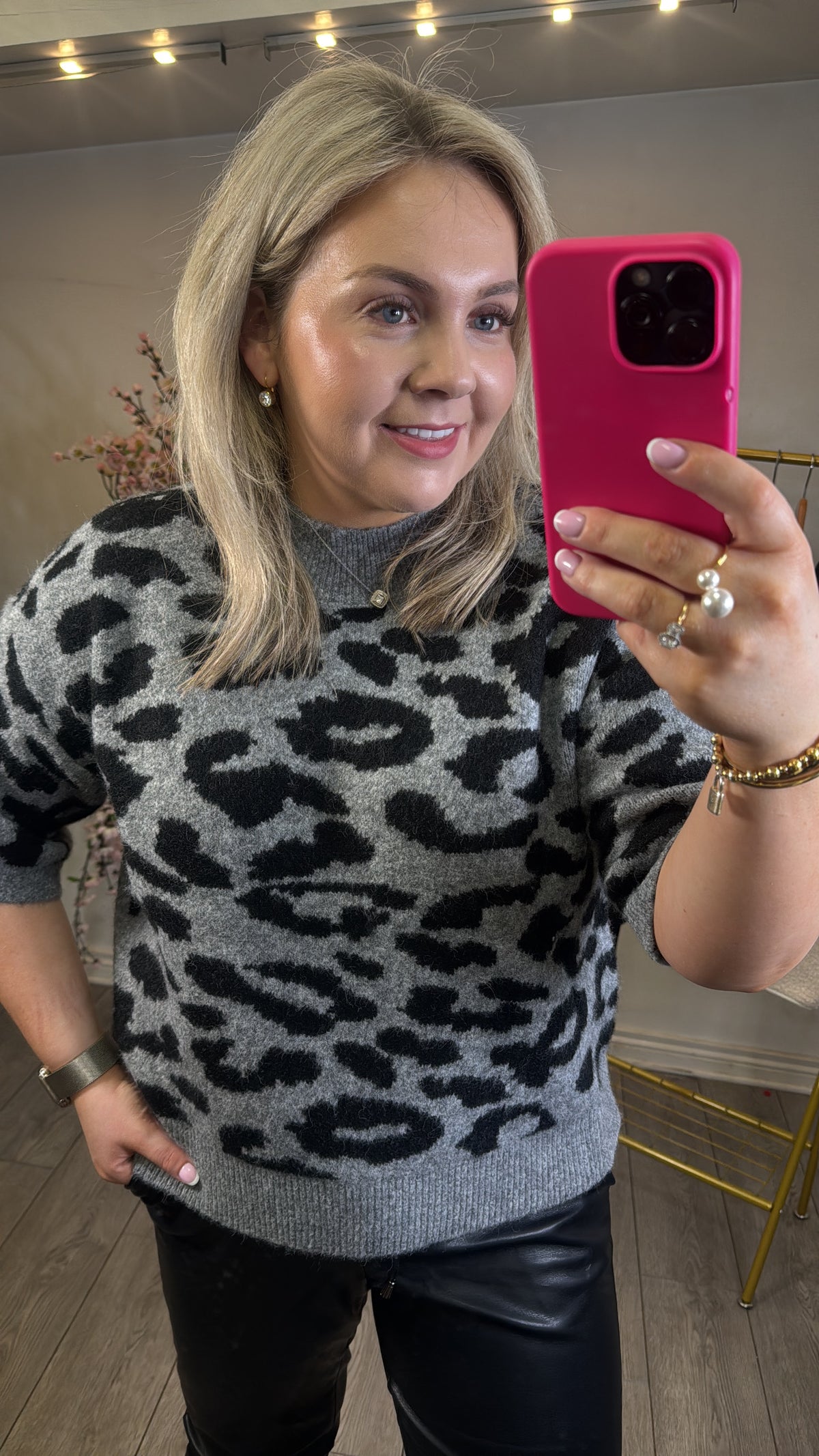 Kaffe KaSandra Grey Melange Leopard Supersoft Knit Jumper