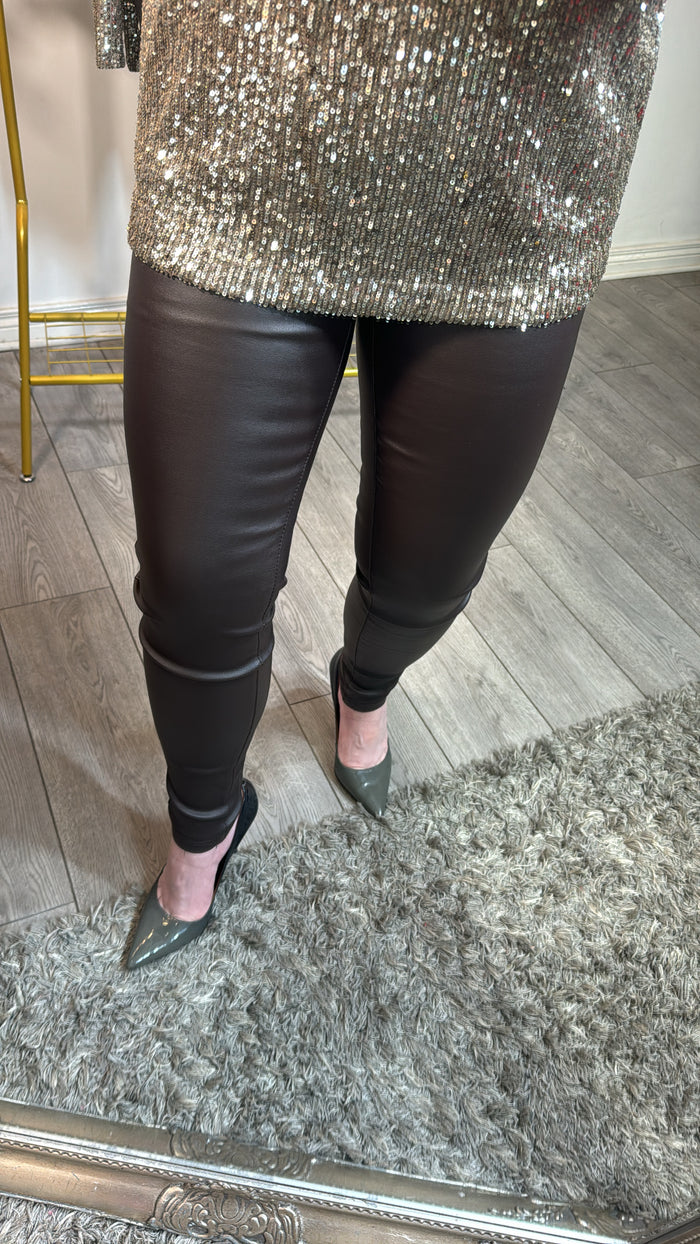 Toxik Chocolate Brown Taupe Highwaisted Bum Lift Matte Coated Jeans