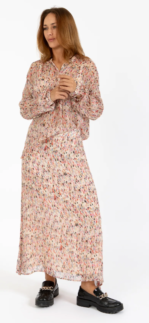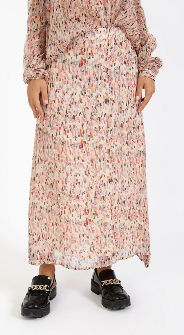 Add color and life to your wardrobe with this skirt in an eye-catching multi-splash print. The lightweight material and A-line cut, make it ideal for summer days and festive occasions.