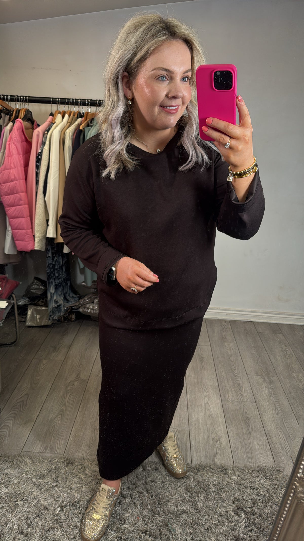 The famous Modal Fabric in a gorgeous skirt! Featuring a fitted shape, elasticated waistband, slit detailing up the back and ankle length. Perfect styled with the matching top.
